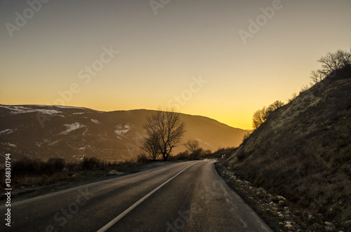 Fototapeta premium Beautiful landscape in the mountains with the sun at dawn. Mountains at the...
