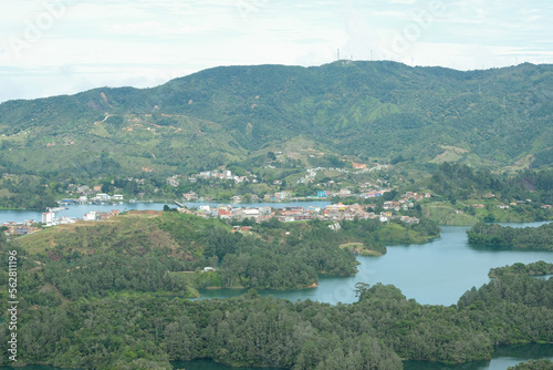 Obraz premium Beautiful landscape lake island view from El Penol Guatepe