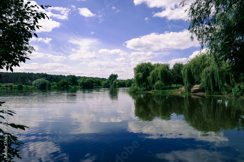 Fototapeta premium Beautiful landscape lake, plants, nature.