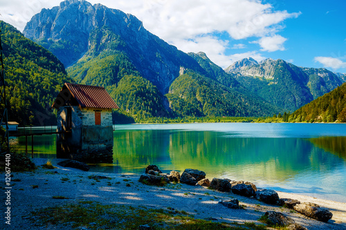 © jozefklopacka, Fototapeta premium Beautiful landscape, lake with mountain in background.