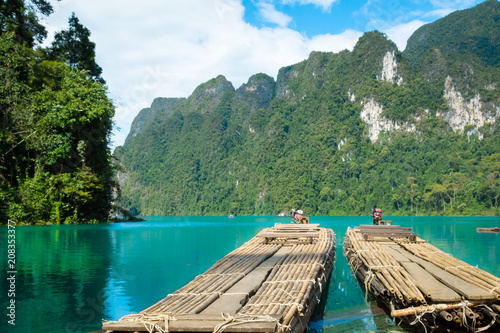 © thanongsak, Naklejka premium beautiful landscape mountains lake sky natural khao sok suratthani thailand