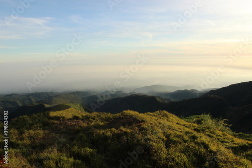 © Nustian Degraf, Fototapeta premium beautiful landscape nature background on hill peak with blue sky
