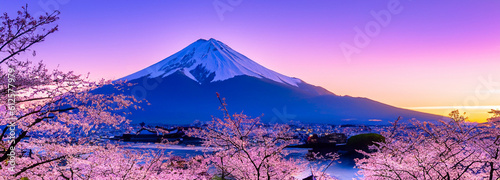 © Marco, Obraz premium beautiful landscape of mount fuji in autumn at sunset panorama style in high resolution