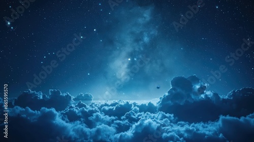 Fototapeta premium Beautiful landscape of night blue sky is filled with clouds and stars