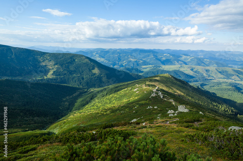 © Denys, Fototapeta premium Beautiful landscape of the green slopes, Carpathian mountains, Ukraine