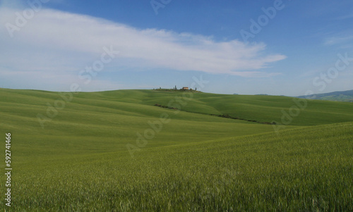 Naklejka premium Beautiful landscape of Tuscany, Italy with house in the far distant