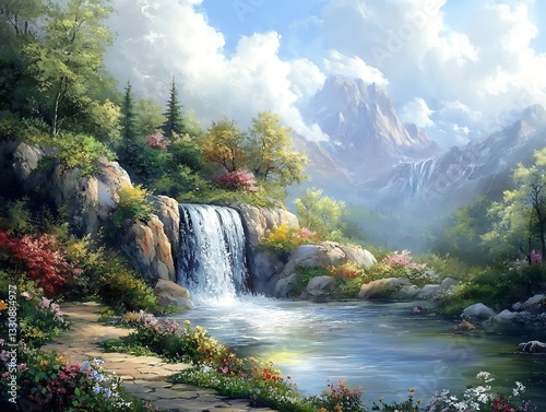 Fototapeta premium beautiful landscape painting of unique nature full of colorful flowers and...