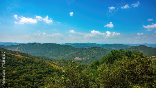 Fototapeta premium Beautiful landscape view featuring lush greenery and a serene sky, ideal for...