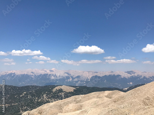 Fototapeta premium Beautiful landscape view from a high mountain to the forest and mountains in...