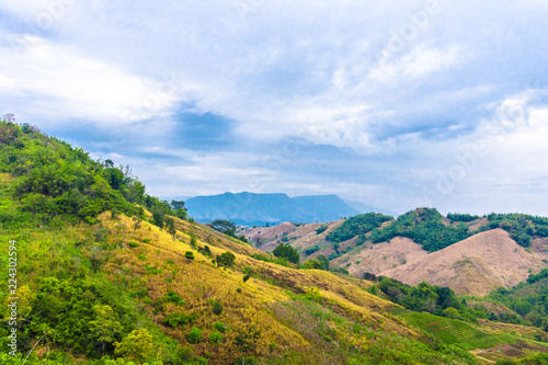 © Pataradon, Obraz premium Beautiful landscape view of hill and mountain with cloud sky.