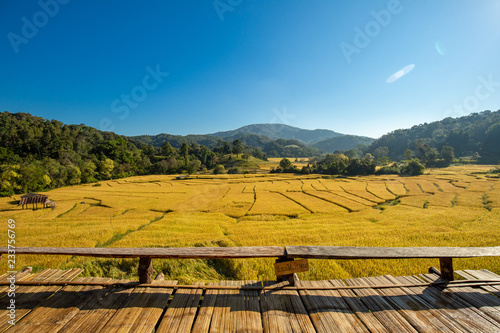 © chayakorn, Obraz premium Beautiful landscape view of rice terraces and house