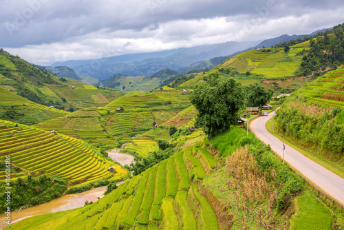 Fototapeta premium beautiful landscape view of rice terraces and house in Mu cang c
