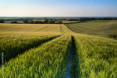 © veneratio, Naklejka premium Beautiful landscape wheat field in bright Summer sunlight evenin