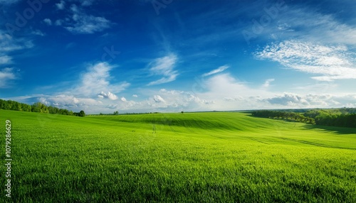 © Sophia, Obraz premium beautiful landscape with a green field and blue sky