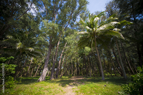 Obraz premium Beautiful landscape with a pathway surrounded by green palm trees, Phuket,...