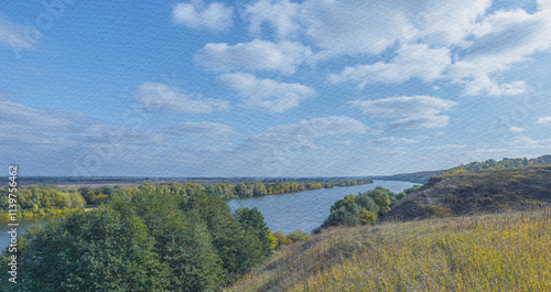 © Sergei, Naklejka premium Beautiful landscape with a river and trees