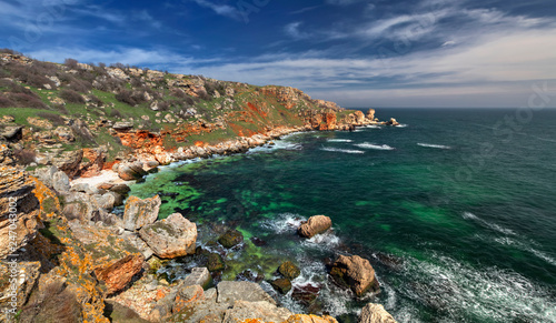Obraz premium Beautiful landscape with blue sea and rocky shore