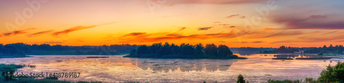 © sborisov, Obraz premium Beautiful landscape with colorful sunset over forest lake