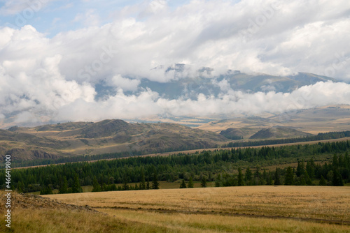 © Ilnur, Naklejka premium beautiful landscape with forest and mountains