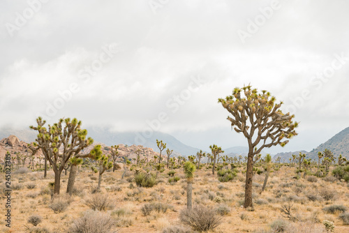 © Kit Leong, Fototapeta premium Beautiful landscape with Joshua tree, mountain, rocks