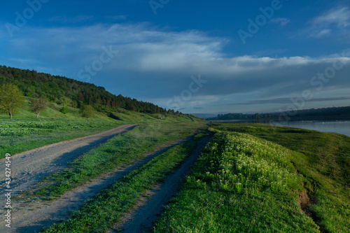 Naklejka premium Beautiful Landscape with lake and trees. Amazing Nature in Europe. Lovely...