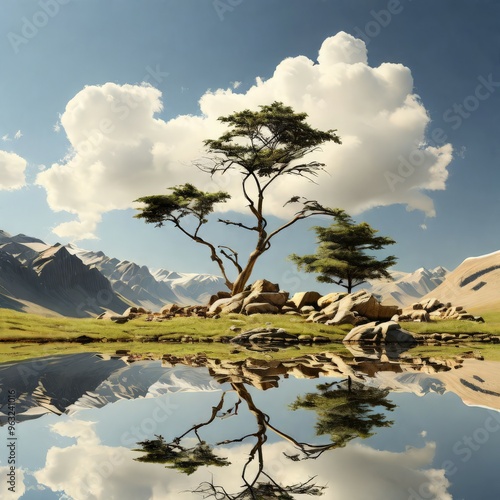 © Quantumo0o, Obraz premium Beautiful landscape with mountains and clouds