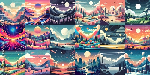 © vector_master, Obraz premium Beautiful landscapes in anime art style. AI generated illustration