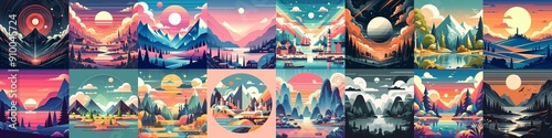 © vector_master, Fototapeta premium Beautiful landscapes in anime art style. AI generated illustration
