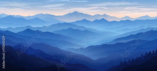 Obraz premium Beautiful landscapes of forests, mountains and adventurous nature. Travel background Panorama - illustrations of silhouettes of landscapes, valleys of pine trees, forests and mountain peaks.