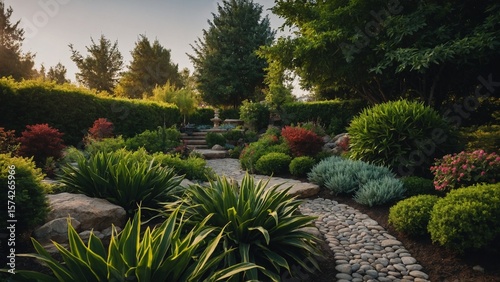 © Jaweria, Naklejka premium beautiful landscaping with beautiful plants