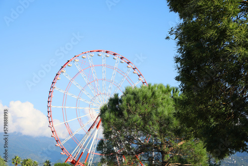 Fototapeta premium Beautiful large Ferris wheel near trees outdoors