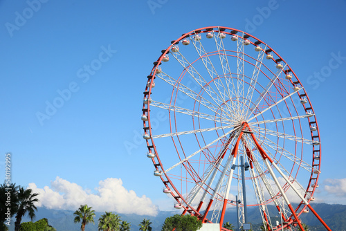 © New Africa, Fototapeta premium Beautiful large Ferris wheel outdoors, space for text