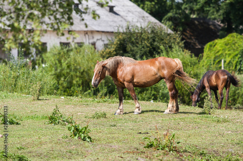 © Artūrs Stiebriņš, Naklejka premium Beautiful Latvia countryside view of a small horse animal farm in a deep countryside small city.