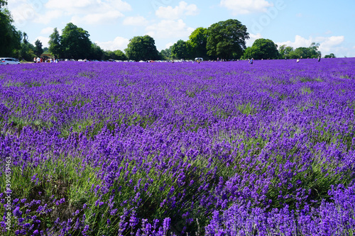 Naklejka premium Beautiful lavender field at Mayfield Lavender Farm on a sunny day, Banstead, UK