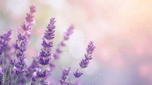 Naklejka premium Beautiful lavender flower blooming in soft pastel colors, creating a serene and tranquil atmosphere perfect for relaxation.