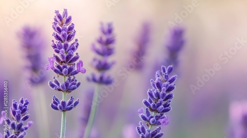 Naklejka premium Beautiful Lavender Flowers Blooming in a Soft Focus Natural Setting :...