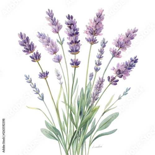 © saba, Naklejka premium Beautiful Lavender Flowers Bouquet Isolated