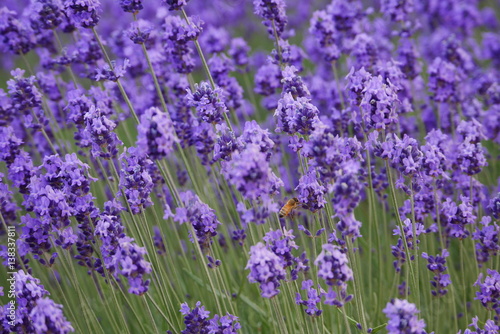© petite usagi, Naklejka premium Beautiful lavender flowers in a farm with bees flying around them
