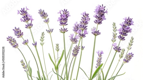 © Bashar, Naklejka premium Beautiful lavender flowers in full bloom isolated against a clean white backdrop.
