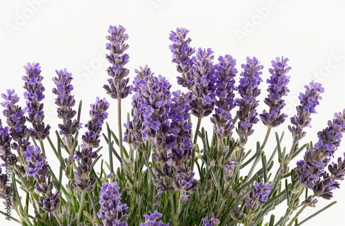 © Sankha, Obraz premium Beautiful Lavender Flowers Isolated on White Background – Elegant Floral Composition