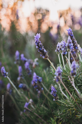 Obraz premium Beautiful lavender sprigs on a sunny summer day.