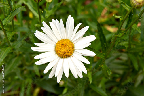 © Giovani Dressler, Obraz premium Beautiful Leucanthemum Daisy in the Garden, Blurred Background.
