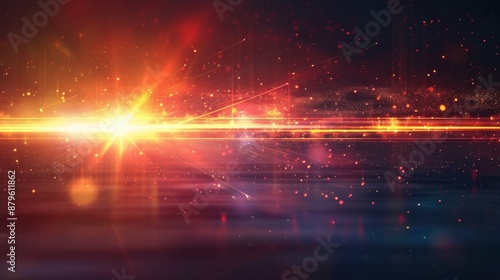 Fototapeta premium Beautiful light flares and glowing streaks on a dark background, creating a...