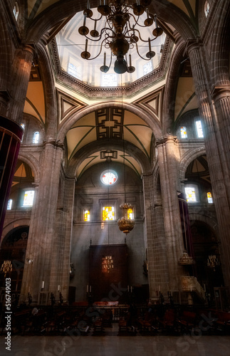 © Daniela Photography, Fototapeta premium Beautiful light from the dome above and great Neo-Classical architecture of the interior at the Metropolitan Cathedral in Zocalo, Center of Mexico City, Mexico..