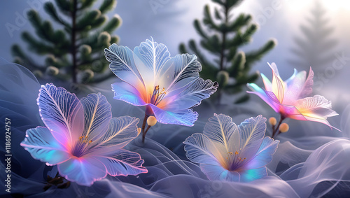 © Feel Surreal, Fototapeta premium beautiful light spectrum spruce flowers, created by generative ai