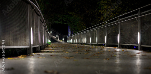 © woitzel, Fototapeta premium beautiful light spots at a small bridge in graz at night with some foliage in autumn