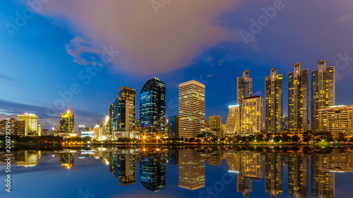 © vuttinan, Obraz premium Beautiful lighting from the waterfront building.