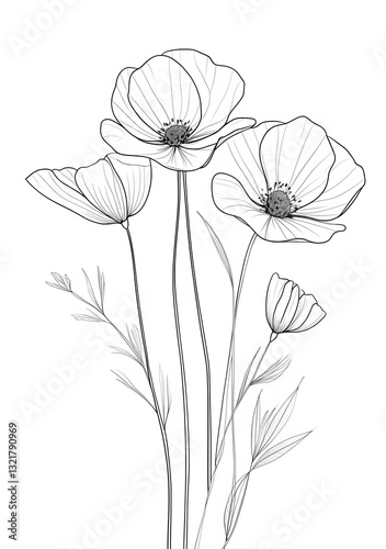 Naklejka premium Beautiful line drawing of wildflowers in bloom