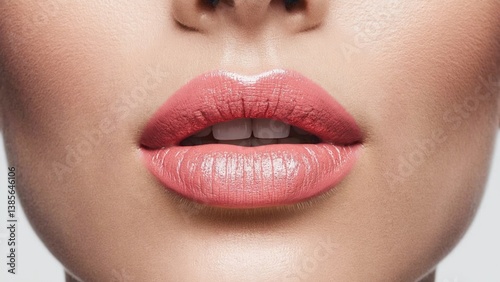 Fototapeta premium Beautiful lips with pink lipstick on woman's mouth.