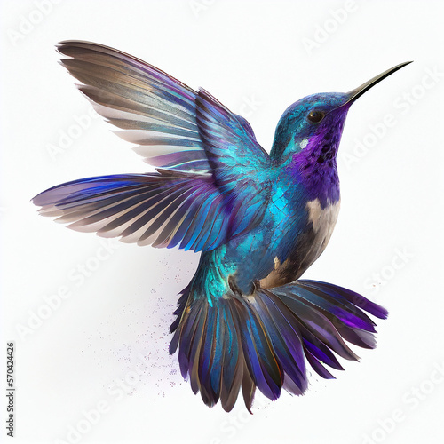 © catocala, Obraz premium Beautiful little bird hummingbird purple blue iridescent color isolated on white close-up